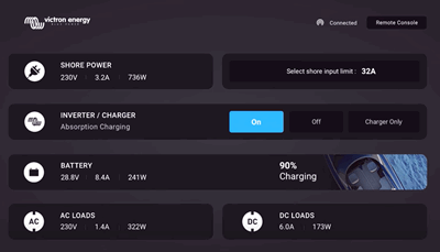 Strømstyring fra Plotter (MDF) gjort enkelt Har du en litt nyere plotter og Victron Cerbo - eller annet Victron GX produkt ombord - så kan du gjøre en HTML5 integrasjon. En HTML5 integrasjon skjer så fort både Cerbo GX og Plotter er på samme kablede nettverk. Video med Raymarine Video med Garmin Video med Simrad