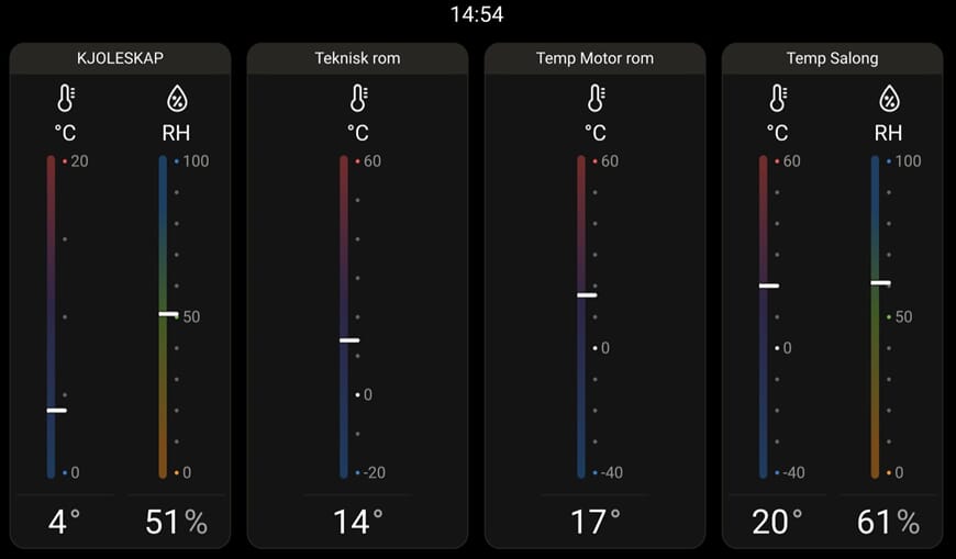 RuuviTag-sensorene gir deg enkel temperaturmåling med Bluetooth. De er små, batteridrevne og kobles rett til GX-enheten. Perfekt for kjøleskap, teknisk rom eller batterirom.