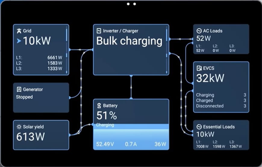 Med et bredt utvalg GX-enheter, innebygde løsninger i MultiPlus-II GX versjoner, gratis VRM-portal og muligheten til å bruke et enkelt Android-nettbrett som touch-skjerm, tilbyr Victron Energy en av markedets mest fleksible og skalerbare plattformer for energistyring.