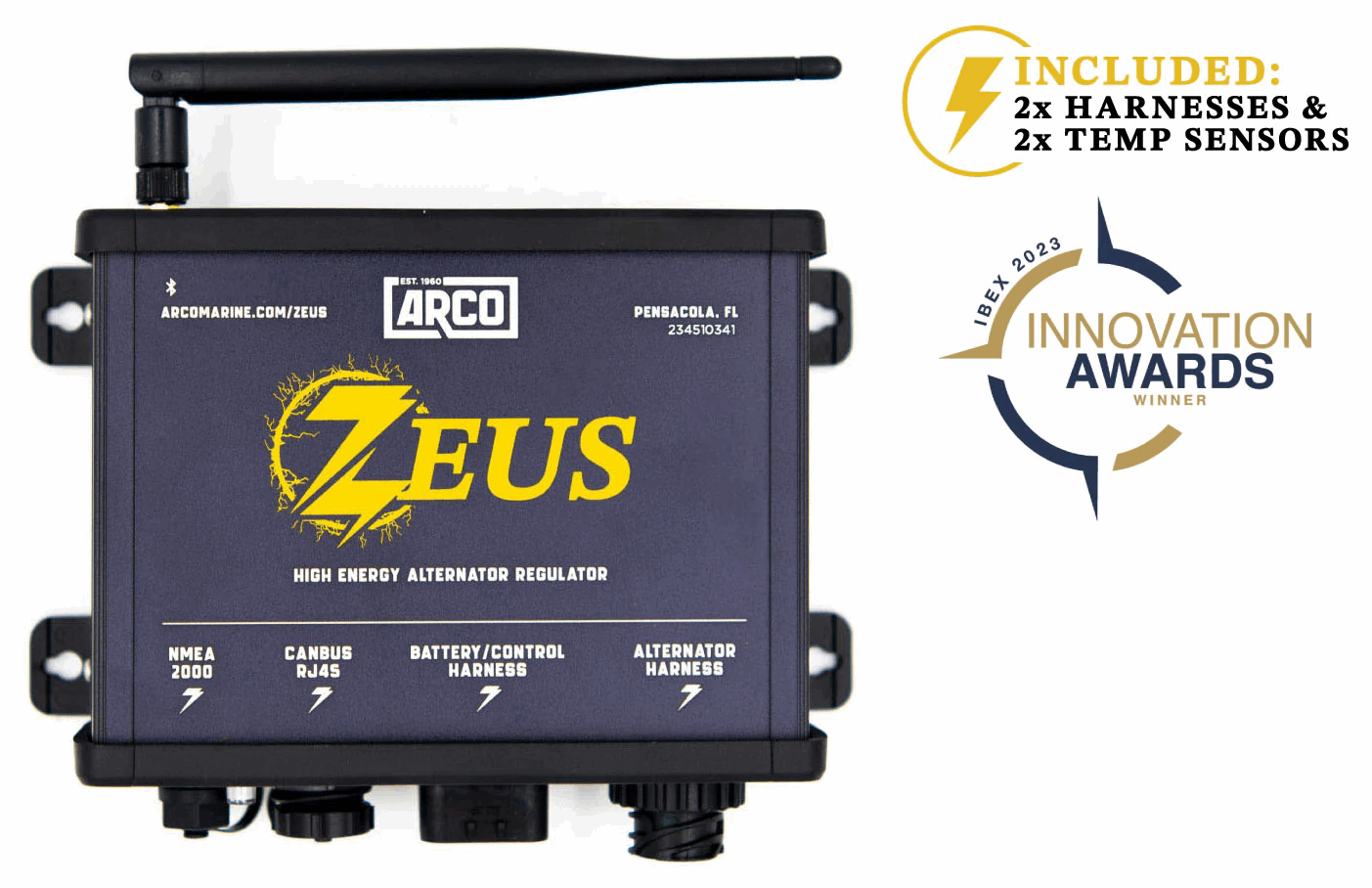 Zeus Bluetooth Alternator Regulator , (Inkluderer 2 stk. tempfølere med 5m ledning, 1 stk. batteriledning på 1,8m, 1 stk. dynamoledning på 1,8 m)