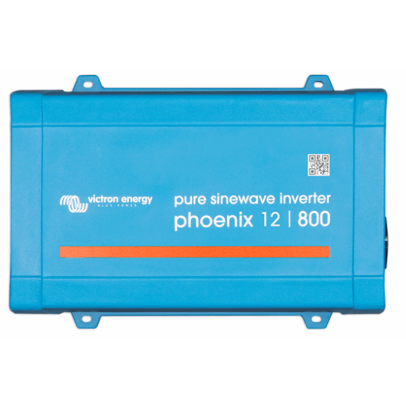 12V til 230VAC ren sinus inverter med kapasitet på 800VA. Oppsett og oversikt via APP og BT. Har VE.direct for kommunikasjon med Victron GX. Standard Schuko stikkontakt.