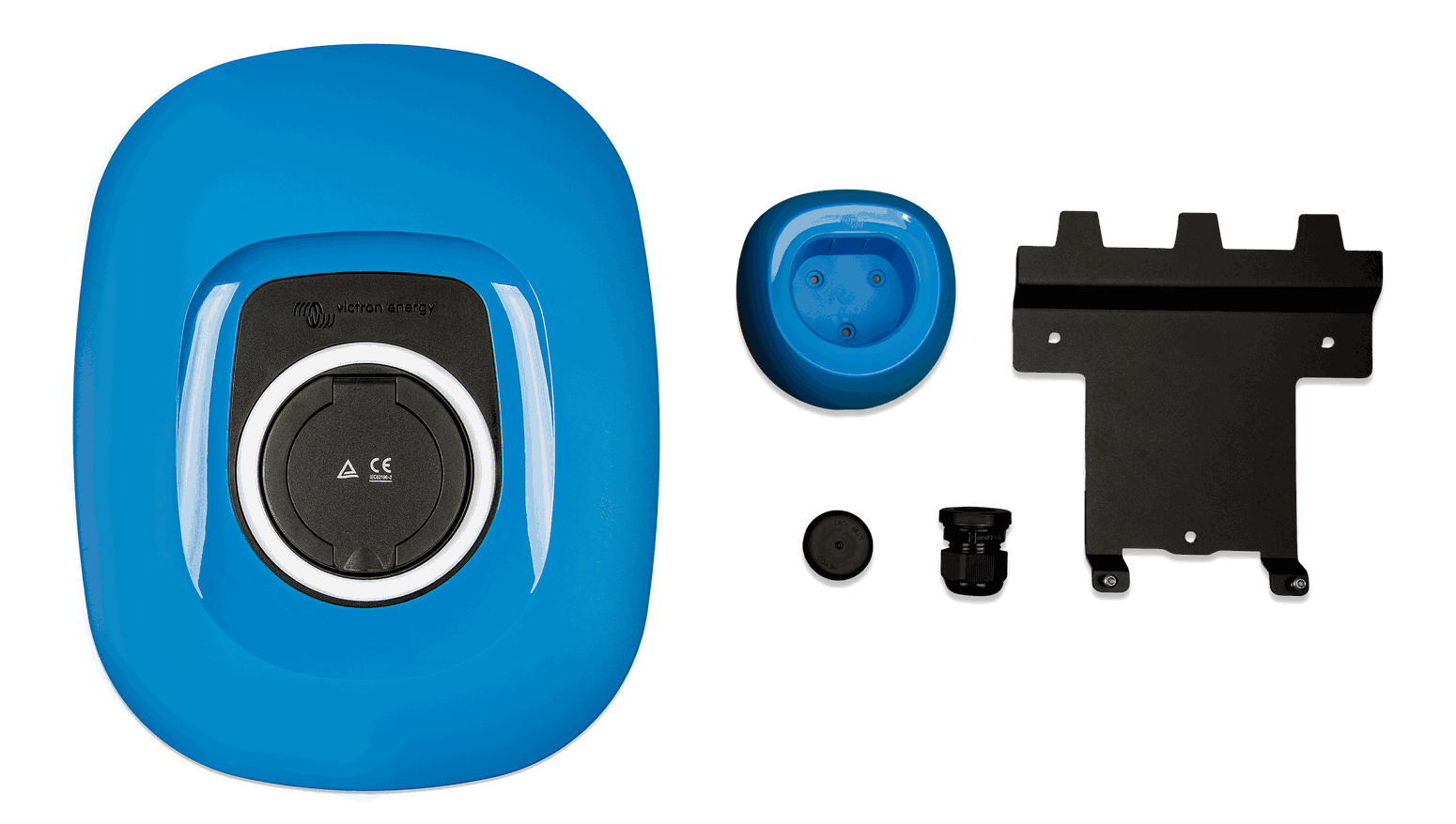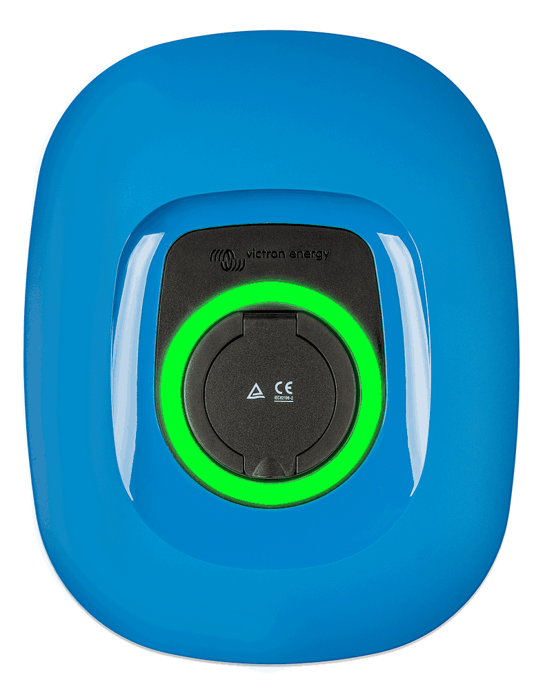 Enheten er teknisk identisk med EV Charging Station, men med et nytt, moderne design tilgjengelig i 3 farger og uten den innebygde LCD-skjermen. Innledende oppsett, konfigurasjon og overvåking gjøres fra VictronConnect via Bluetooth og/eller det integrerte webgrensesnittet via et WiFi-tilgangspunkt eller et WiFi LAN.