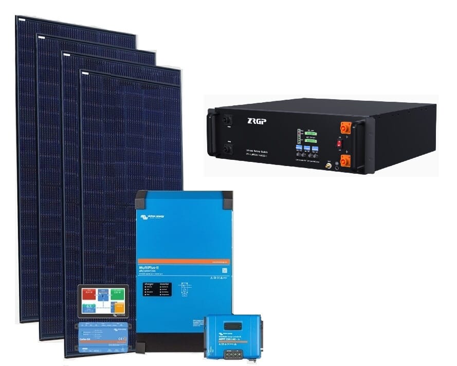 Offgrid pakke 10A leveres som en komplett og ferdig sammensatt løsning. Den består av solcellepaneler med samlet effekt på rundt 1,6 kWp, inkludert solcelleregulator og standard festemateriell. Videre inngår litiumbatterier med ca. 5 kWh disponibel energikapasitet, samt en lader/inverter på 3 kVA som kan levere opptil 2,4 kW kontinuerlig 230VAC. En overvåkings- og styreenhet med skjerm er inkludert, og gir full oversikt over anlegget samt mulighet for fjernmonitorering, forutsatt at det er internett tilgjengelig på installasjonsstedet.