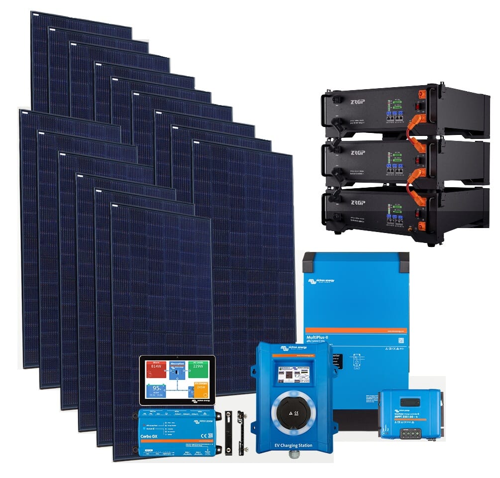 Offgrid pakke 32A leveres som en komplett og ferdig sammensatt løsning. Den består av solcellepaneler med samlet effekt på rundt 4,9 kWp, inkludert solcelleregulator og standard festemateriell. Videre inngår litiumbatterier med ca. 15 kWh disponibel energikapasitet, samt en lader/inverter på 8kVa som kan levere opptil 6,5 kW kontinuerlig 230VAC. En overvåkings- og styreenhet med skjerm er inkludert, og gir full oversikt over anlegget samt mulighet for fjernmonitorering, forutsatt at det er internett tilgjengelig på installasjonsstedet.