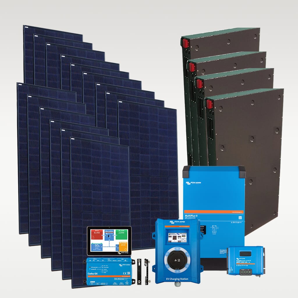 Ekstrem hyttepakke med 40kWh batterikapasitet, 5700W med sol, 10KVA lader/inverter og el-bil lader