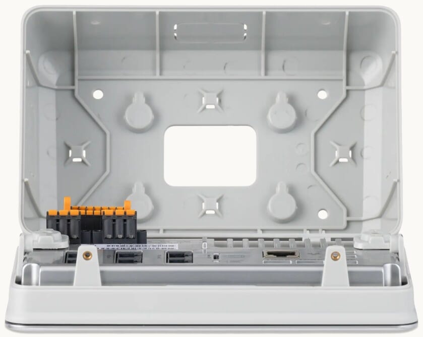 Designet gjør det enkelt å føre og koble til kabler til Ekrano GX sine grensesnitt fra sidene, toppen, bunnen eller bakfra. Dette forenkler en ryddig installasjon i tekniske rom, skap og andre plassbegrensede miljøer.