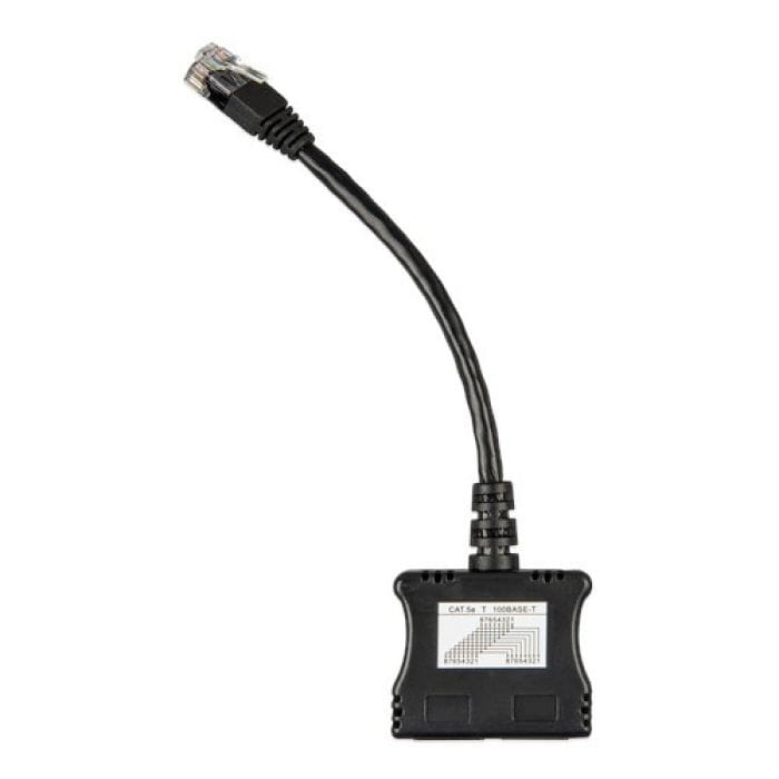 RJ45 splitter med en hann og 2 hunnkontakter, f. eks. til å kable flere VE.bus produkter sammen.